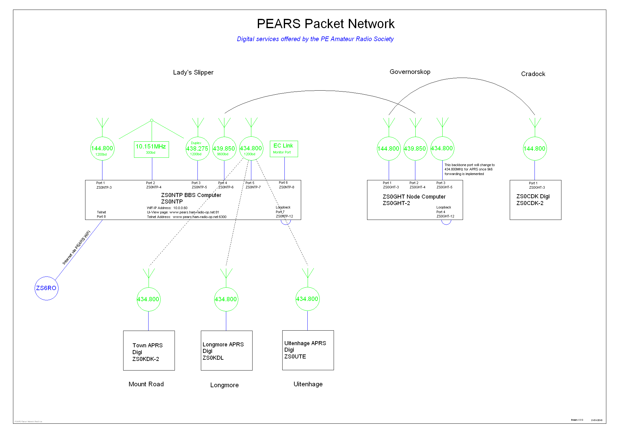 See the Technical Info page for details on the operation of the PEARS Packet Network. See the BBS page for more on the PEARS ZS0NTP BBS.